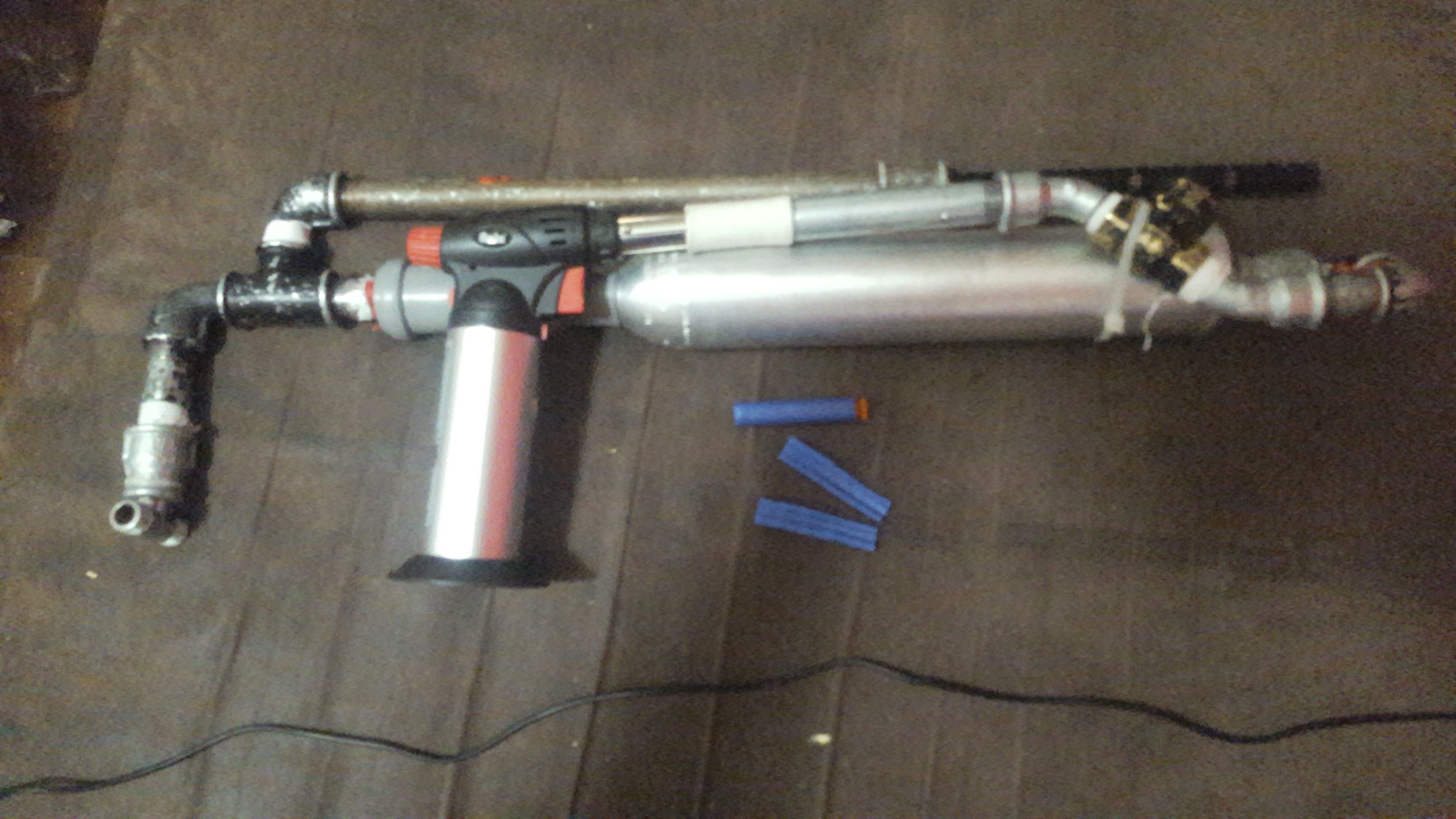 My new toy. It shots nerf darts and everything attached to a dart. The Problem with the "uncompressable" venturi mix is solved by some valves. .