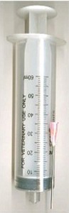 A simple syringe meter. The red tubing is the insulation from 20G wire. (see Hacking a lighter) |
