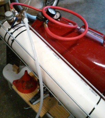 The picture's old but there's the air tank (red) and oil reservoir (PVC).