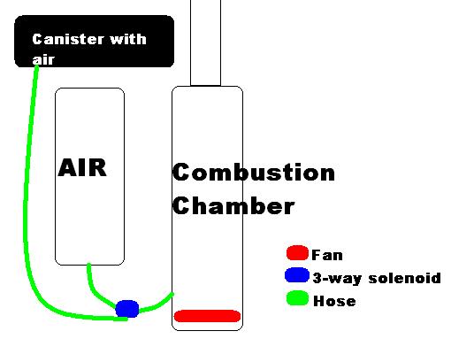 The idea is stupid if I say. expensive and takes the portability away from combustions.jjjd wrote:Ok, can you people read, I am going to be using a canister of air, oxygen, or whatever to fill a second chamber. I want this to push out the exaust, i could care less if it makes a better burn rate. Ignore the canister idea for now, i just wanted to do that to make it easyr to use, without having to pump it up or have a compresor with me. The fan will still be there to mix but have nothing to do with venting