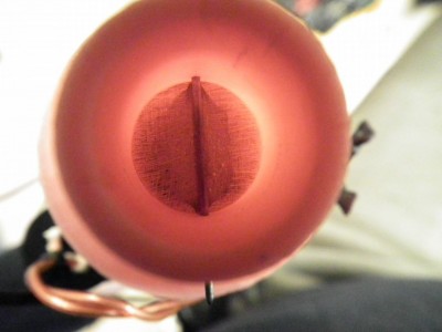 Another progress is the size of the initiator chamber, I'm down to around 70cm³/4.3ci volume still keeping the 50mm/2" diameter. The sound does get a bit more high pitch to it when going down in chamber size, but that does not matter to me, it can sound like a cannon or machine gun, I'm happy either way, as long as it is LOUD :D