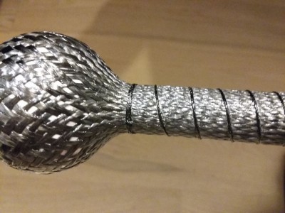 Then it suddenly came to me. Carbon fiber! Lots of people make fiberglass stuff for RC planes, carbon fiber is not any different in manufacturing methods, only a different material which gives a more stiff product. I even have a guy at the club making fiberglass fuel tanks for RC jets, he gave me some hints, and I found some braided carbon fiber sleeve which would be easy to work with, and I found some affordable high temp epoxy resin. Resin has arrived, but not the carbon fiber, so I won't be making any real stuff from it before next weekend.