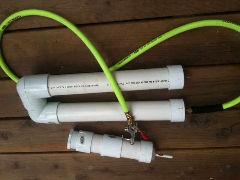 Yes the tank is still PVC, but I have a safety cutoff switch built into the air compressor. I'm interesting in a setup that would still use high pressure air for the propulsion system. I was thinking of maybe getting one of those high pressure metal or carbon fiber paintball tanks that can take about 3000 psi and regulating down, but I have no idea how I would charge any tank beyond 150 psi (the limit of my air compressor). I have considered using a refrigerator compressor, but the price of such devices is beyond my current capabilities. Any suggestions?