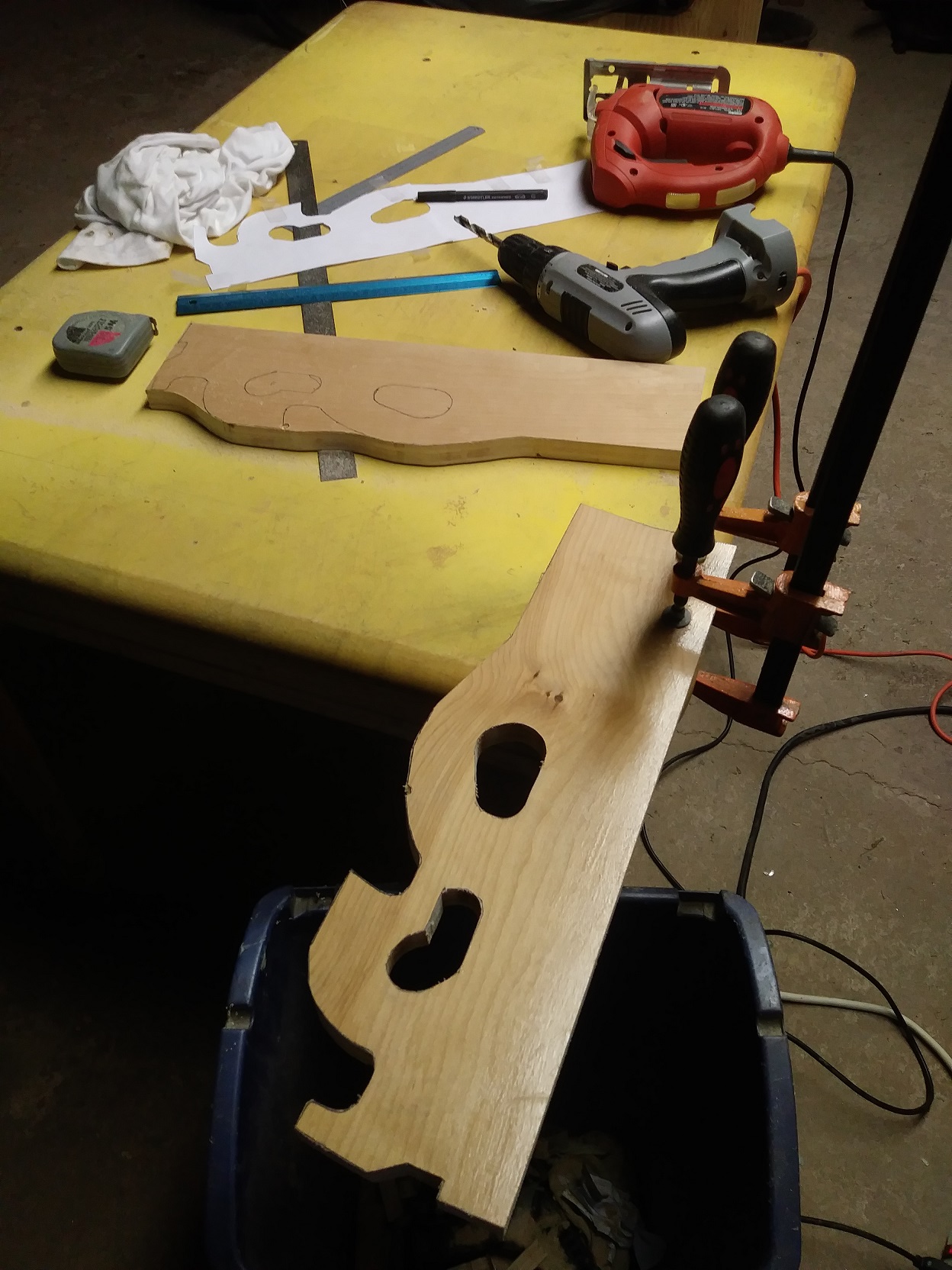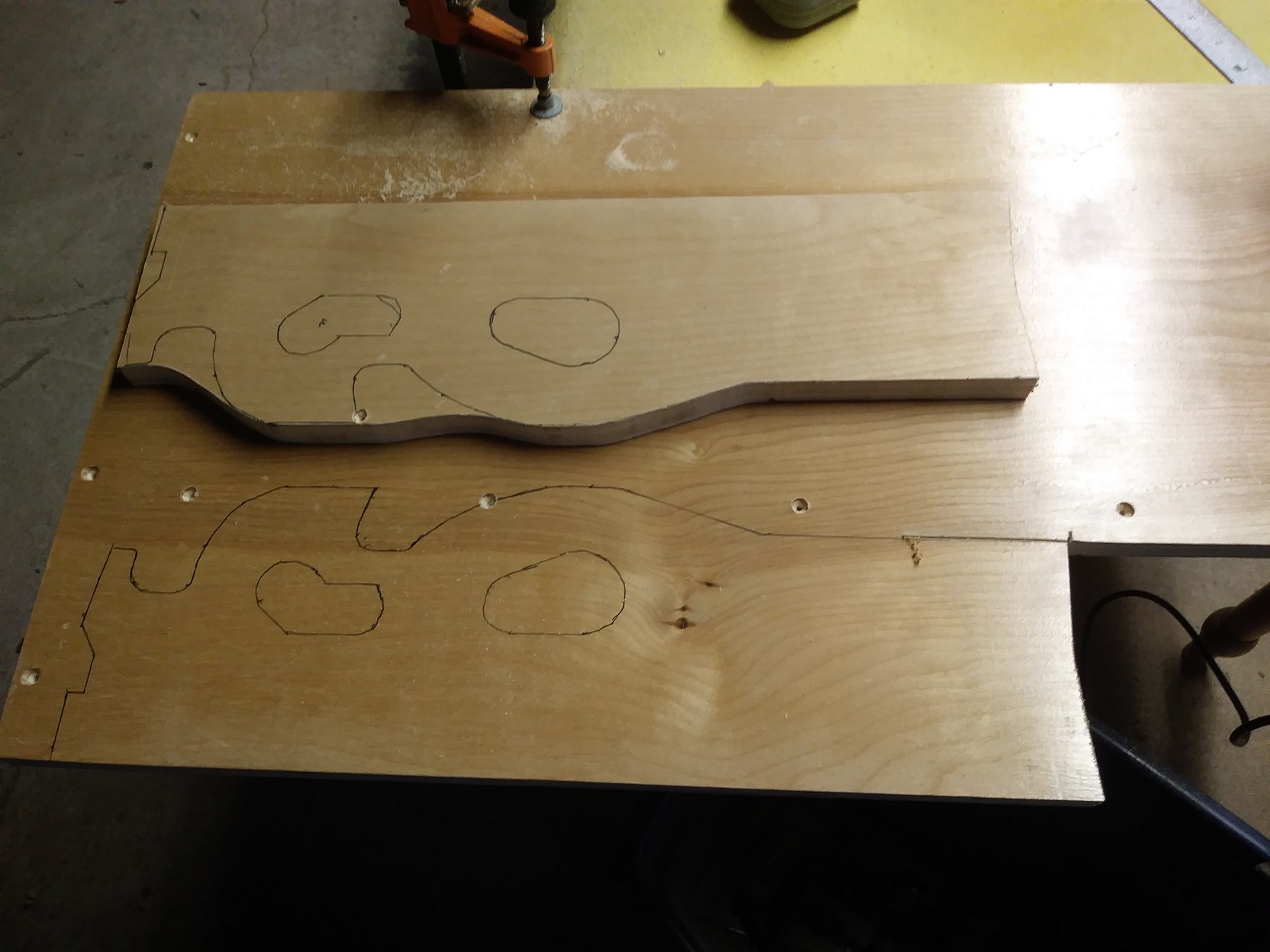 Cut out the rough body shape from 3/4" plywood. Will be in two halves screwed together.