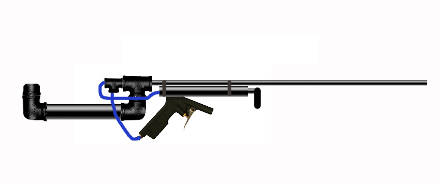 Here is a rough diagram I made on photoshop that will give ya's a rough idea on how it will look. I just stuck the blowgun there for the hell of it but Choas suggested that I use a 1/4 ball valve trigger like what Jack uses on his. Damn good idea concidering I love the whole "pop off valve trigger feel.