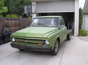 This is my new 67 chevy pickup. I got it for free about a month ago. I have completely torn it to the bare frame and rebuilt it since the pictures. However you can see the new 327 smallblock chevy engine that I have built from the bare block. Next on the list is a paintjob. I just spent about 2k on it for all new chrome bumpers and trim and suspention parts.