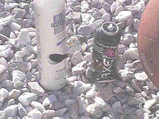 - Why won't anyone play basketball with me? The basekatball was used as a backstop for the 12 grams after they sliced through the aerosol cans. The only reason they stopped outside the ball and didnt go completely through is because of the contact they made with a plastic chlorine bucket (nice thick walls on those babies).