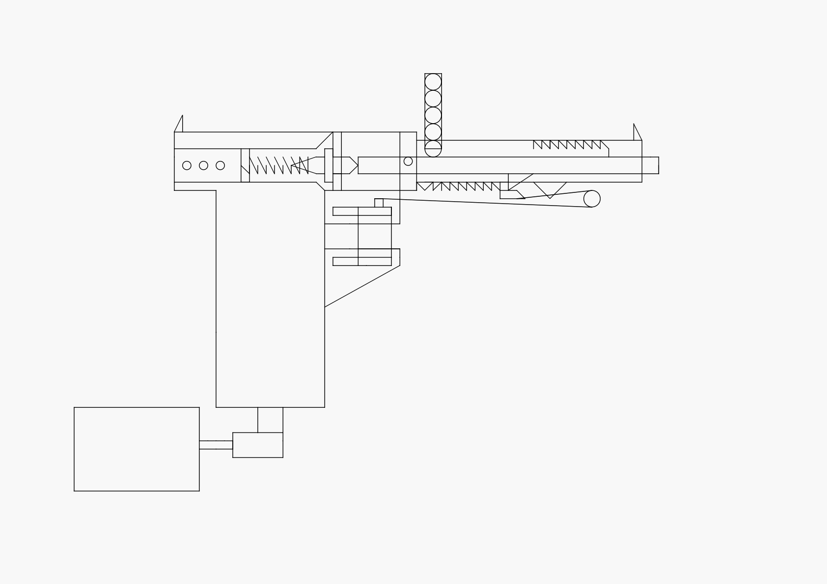 the thing with the wire attaached to the trigger and spring pulls the barrel forward and when it hits the diagonal bit it lets go you let the trigger go and every this goes back a recoks