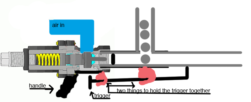 Btw if you're still really determined to have that valve, you could build one from a T and a spring and something much simpler. I wouldn't set it up like you show it though. But I have no use for it because I'd have to figure out how to get it to load. P.S. your picture says really small, two things to hold the trigger together and it looks like pink chewing gum.