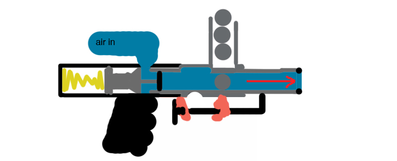 i realized that u could put the air tank next to the magazine a handle and trigger system underneath