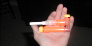 Ok im not really sure if i can do the whole picture thing or not so cut me some slack. Alright all you do is cut the orange barrel on the nerf gun down, and take the stick inside out with needle nose pliers or something. Then wrap one end of the pen barrel in duct tape until it fits snugly in the hole. Then duct tape that in tight, put it back in the casing, screw it back together, and shoot some stuff with airsoft bbs. epoxy could be used and would probably be a lot stronger and better. on the sawn off picture of mine, i just happened to have a piece of pvc that reduced from the nerf barrel size to the pen barrel, so i just used that.