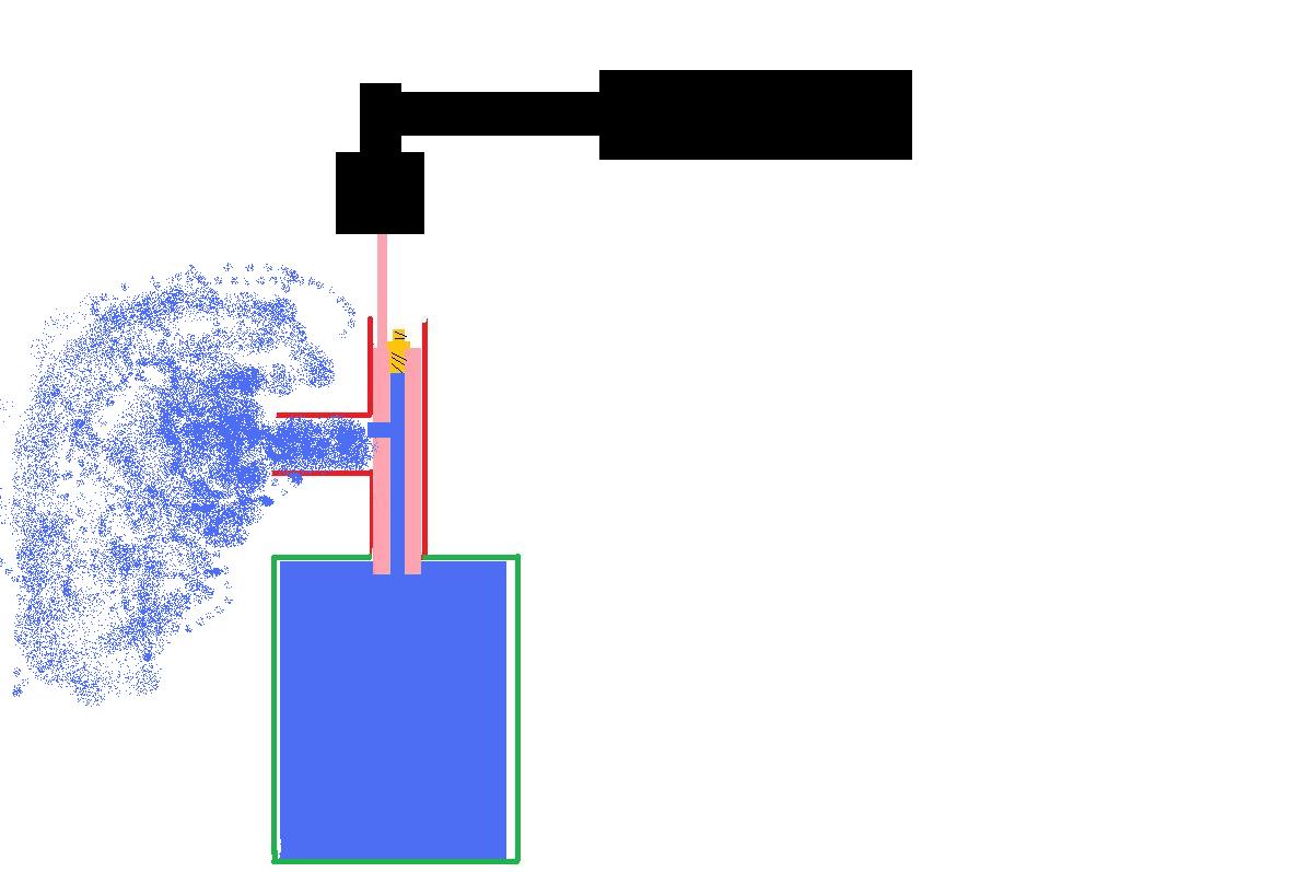 Imagine a massive hammervalve, with the stem continueing through the chamber and sticking out the front of the reservoir..