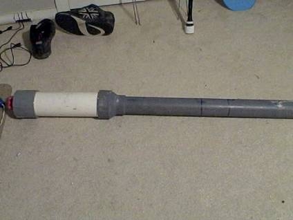 this is my first combustion it used a lighter at first but now it uses a bbq sparker. there is not much else i can say that the picture wont tell you but feel free to ask.Oh for fuel i use hairspray or axe or whatever i have on hand. I shoot 3/4 rockets with glowstick tops.