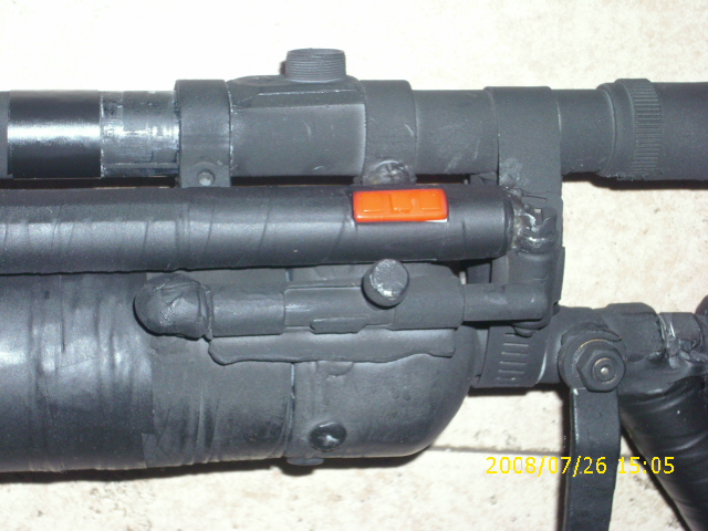 Another update: I added a flaslight to the gun. I left the red swithch there because it looks better red, and it will just get rubbed off by my thumb.