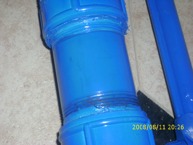 I can get about 20 "stots" from a single charge of my tank. The Piston on the end of the steel rod is some electrican tape roled up until it fits in the pipe, then I have 2 o rings on on the ends of the tape, which are epoxied on. Tommorrow I will buy a 7 foot 1/4 inch hose to replace the tiny 7 inch 1/8 inch hose. The cylinder is 1/2 inch sch 80, sleeved at the end is some 3/4 inch sch. 40 galv. steel, with an endcap and a 1/2 inch ball valve. I might get some bondo to make it look like a tube(I will but it in some 1 1/4 inch pipe and pour in the bondo, or cast epoxy. I have pointed the tip.