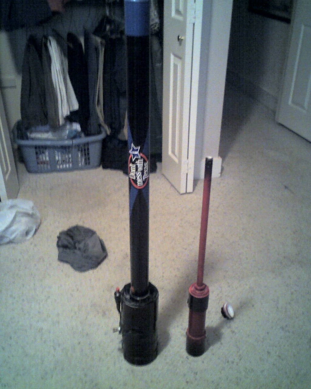 This has an ungodly cb ratio to start with. 12" of 2" chamber and probably just shy of 2' of 1/2" barrel. Piezo ignition, aerosol propelled. As the name says, carrots were primary ammo. Notice custom faded paintjob.