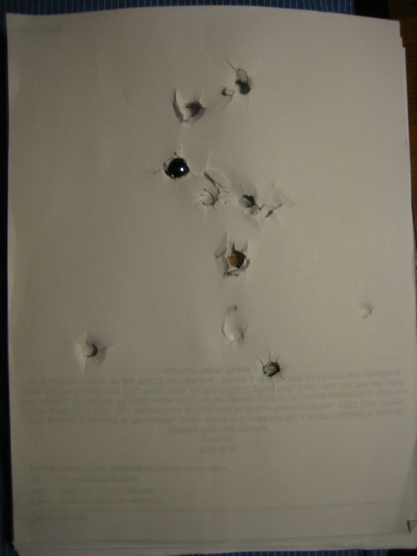 Just a quick damage photo to share. I built a pretty crude indoor shooting trap to test out the gun. The trap is just a cardboard box with layers of paper inside and a board behind to stop any stray shots. So far at 100 psi, I have been able to shoot through about 100 sheets of paper(which is one row of papers) from 25 feet away. The ammo is a 1/2" marble.