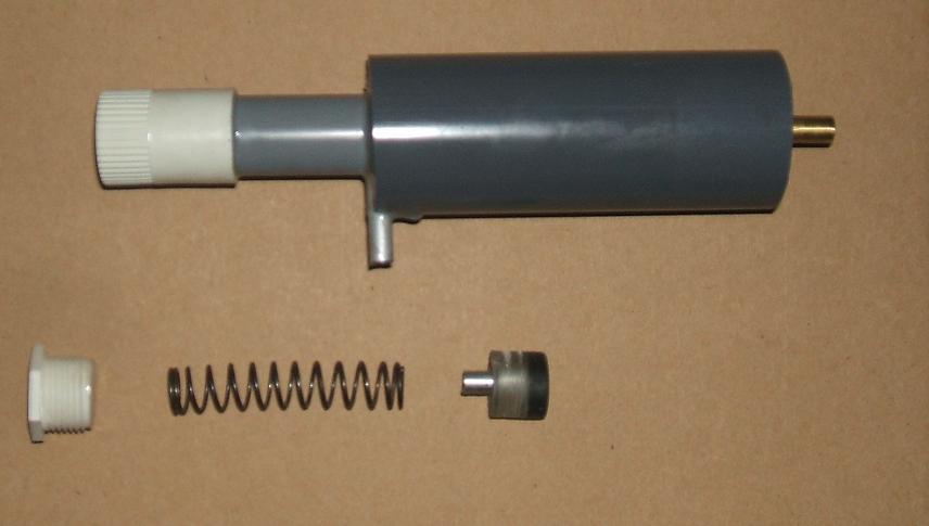 Replaced the air spring with a coil spring, so the piston isn't 100% airtight but the (yes, psycix) threaded cap is so not a lot of air is wasted, and it's reasonably servicable ;) Seat and piston diameter are reduced compared to my previous prototype, we'll see how it goes tomorrow when it's fully hardened.