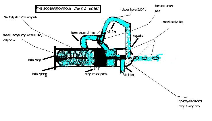 first post but i've been lurking awhile, first off i've built clouds before, i'm not a total noob but i decided it was time to step it up and do a piston gun, i started looking at the swanstrom design and started working on it but mine took on a style of its own 8) i made a working prototype except for the "bolt return line" (see diagram) i need to get the brass tee. as you can imagine without it the bolt floats half open and empties ungodly fast :twisted: :shock: