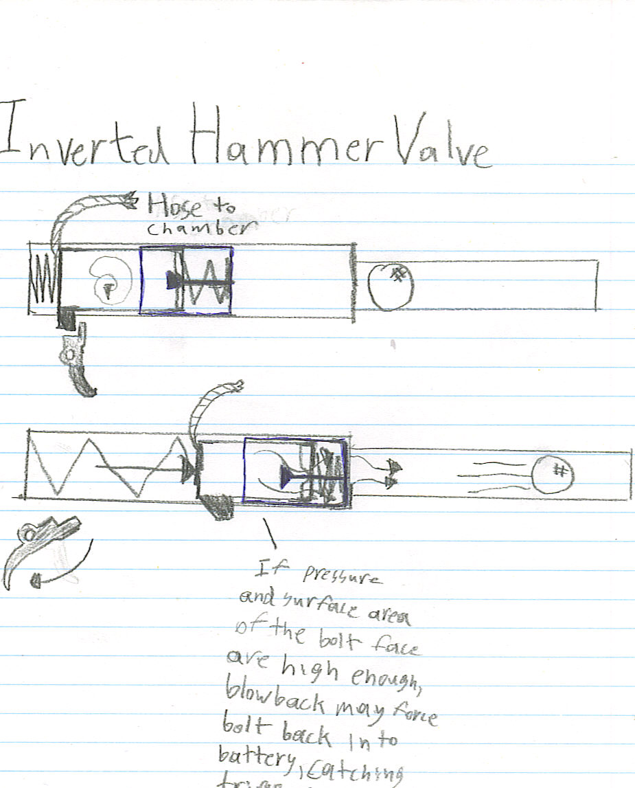 When you think about it though, a hammer valve that works on a commercial airgun has a tiny flow, but it's being held back by 4,500-3,000 psi of pressure. For spudguns using say 100 psi, you can make the valve much larger and still use the same size and strength of hammer.inonickname wrote:You can decide if the hammer valve is right for you- they're more ideal on a small scale and will require up sizing dramatically to work on this size.