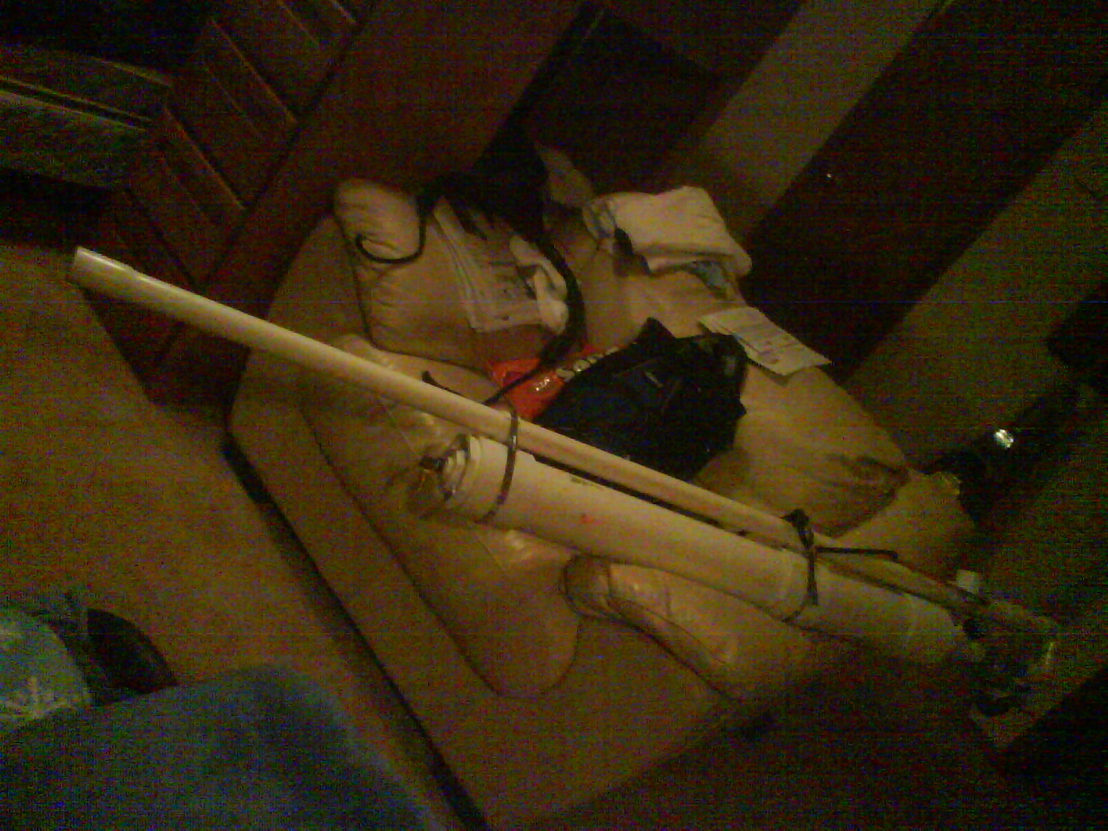 Hello again. This cannon is one that i completed a couple months ago. It was also my first pneumatic cannon. I got the idea first from clide and his semi auto gb cannon. I made a blow forward bolt and all but it kept breaking. After going through a couple of bolts i decided to just go with a regular breech loader. This is how it turned out.