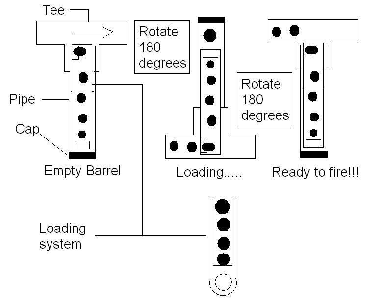 I don't know if reloading for a semi-auto has been a problem, but here is my idea. The picture will be able to explain better than I can in words. I'm sorry if this an idea already discussed but I was bored one day and was sketching stuff for a new cannon. The concept involves gravity and physically turning the barrel to do a 360 degrees. I don't have the resources right now to make it until I get back to school (We have a CNC there