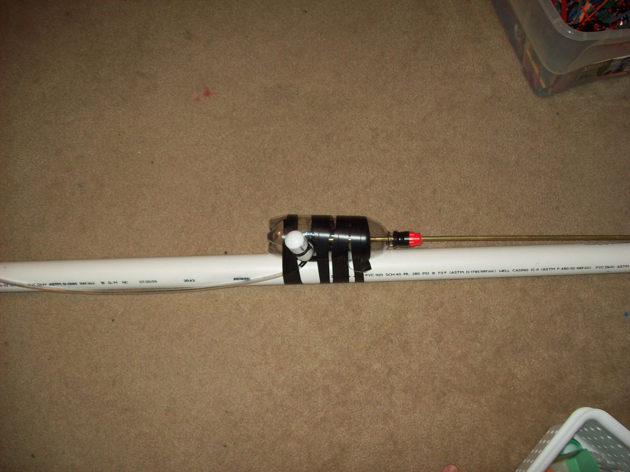 Let me guess, the big piece of PVC pipe that the gun is strapped to is the on-board precharged air source. Is there any reason why the vortex cap and barrel are inside of a soda bottle?