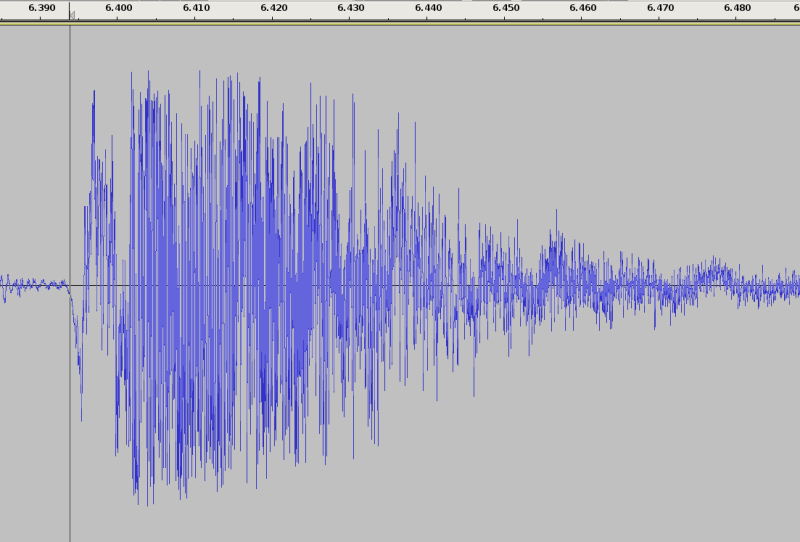 Before the trigger there is a low frequency sound which the trigger event (hiss) rides on. The trigger starts at 0.130. At 0.150 there is a sudden increase in the hum, indicating the original valve vibration is back, but it lasts a cycle and a half with a valve burp at0 01670 seconds followed by one at 0.1690. I call these burps as the amplitude is way too quiet. The valve is still trying to open but the o rings appear to be sticking so it re-seats as some chamber pressure drops.