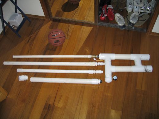 - A very nice shot (if I do say so my self) of the front end of the valve, a 1"-.75" reducer, and the beginning of my 5' long CPVC paint ball barrel...