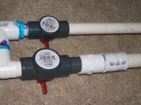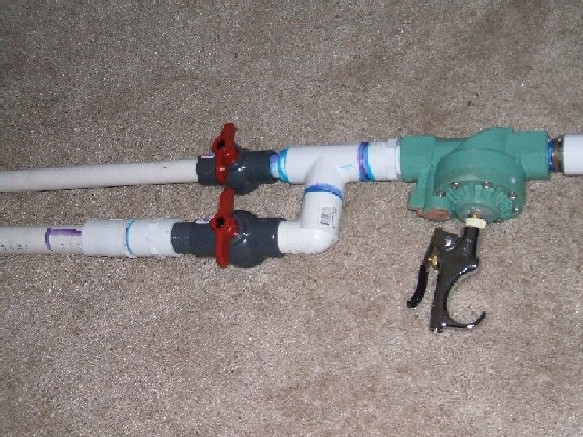 edit: woopz didnt see the sprinkler valve i spose you would just leave both ball valves open and activate the blowgun for double shooting.