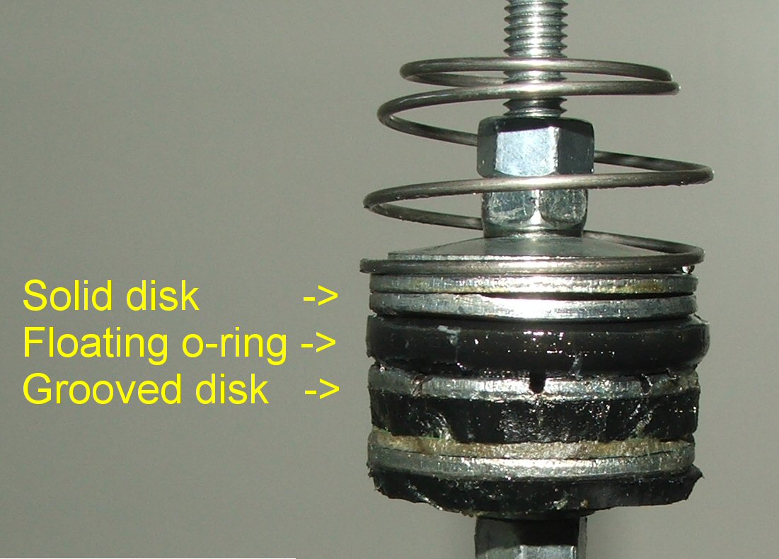 I came up with this when renovating my long-ignored airsoft semi. By cutting grooves in one of the edges that seal against a floating o-ring (described here), I'm allowing the air escape around the o-ring in one direction. When the pressure is reversed, the o-ring seals perfectly against the other, solid edge.