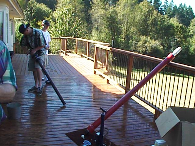 I found a photo of another old PVC cannon of mine that broke the female PVC adapter. It is a cannon that used the piston that is now in my ABS cannon. I forgot about that beast. It was HEAVY. The ABS cannon replaced it and is much lighter. It is a 3 inch chamber 2 inch barrel coaxial.