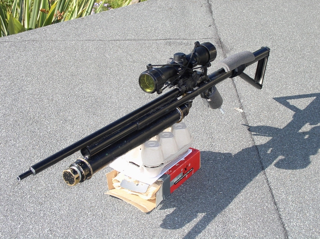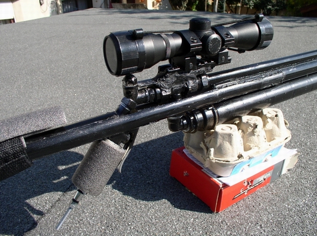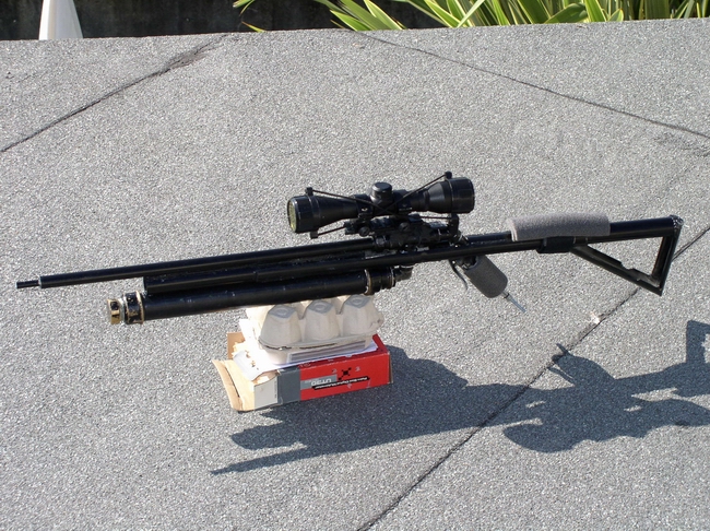 This is my latest build,a semi auto sniper rifle.With 150 psi i can chose shooting time from 3 to 15