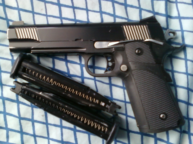 My new(well new to me) KJW 1911/2011 HI CAPA tactical, i broke out the sanpaper and done some minor details(it was full black, but that was boring...)