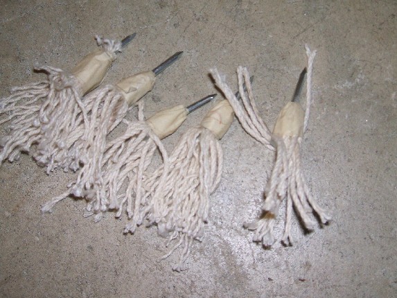 I prefer paper towels for feathers, I just cut a square,and stab the nail though