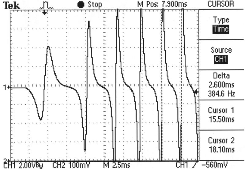 T shirt cannon performance data provided below. Entire full 10 division trace is 0.025 seconds.