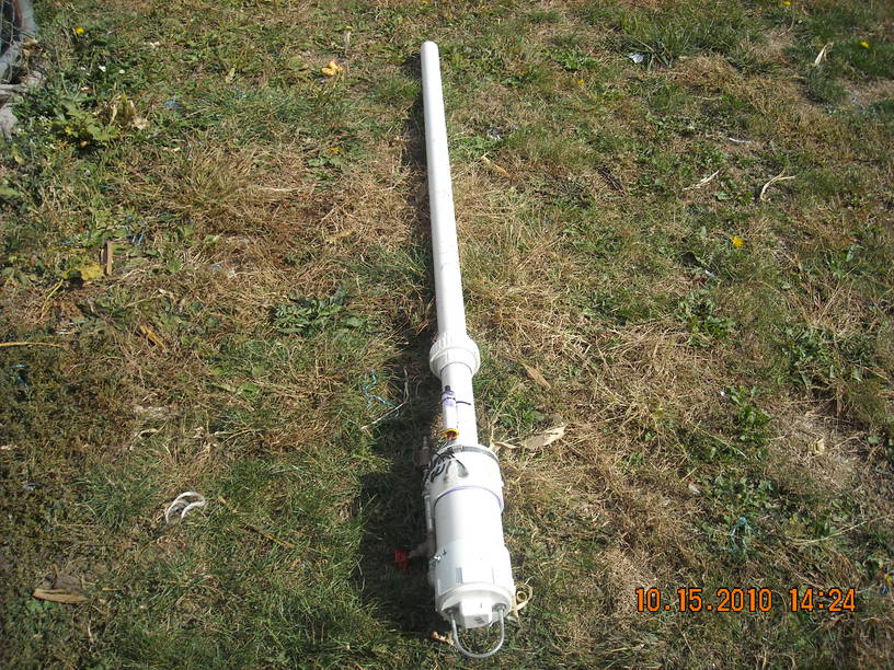 It alo shows the BBQ ignitor held in 3/4"pvc conected 2 drywall screw for a single spark gap. the electrical connectin were soldered and coverd with silicone
