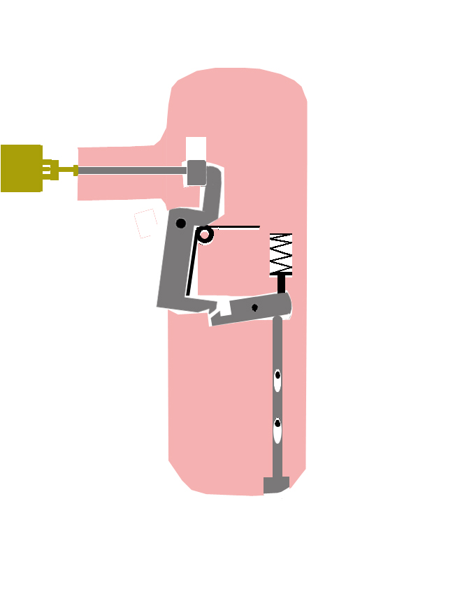 Pull the trigger, the middle rod gets pushed. Which pushes the longer horizontal rod, against the schraeder valve.