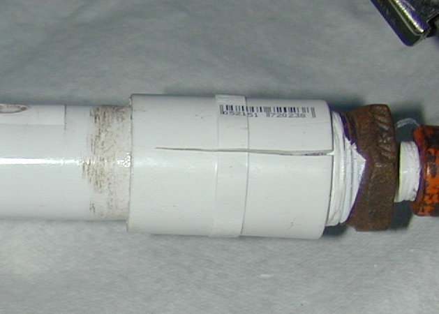kickmeinthejunk wrote:You have a better chance of this happening again if you plan on doing the same setup. When mixing pvc and metal your female threads should always be metal. You could use a steel coupling and attach a male adaptor to the pvc.