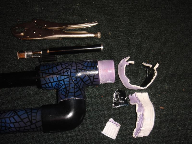 After about 20 minutes of slowly heating with a pencil torch and peeling it away with vice grips, I removed the cracked fitting with no damage to the valve. At this point I am certain of my solvent welding ability and that the cans of primer and cement were fresh. PVC glue simply does not join as well as the prophecy foretold.