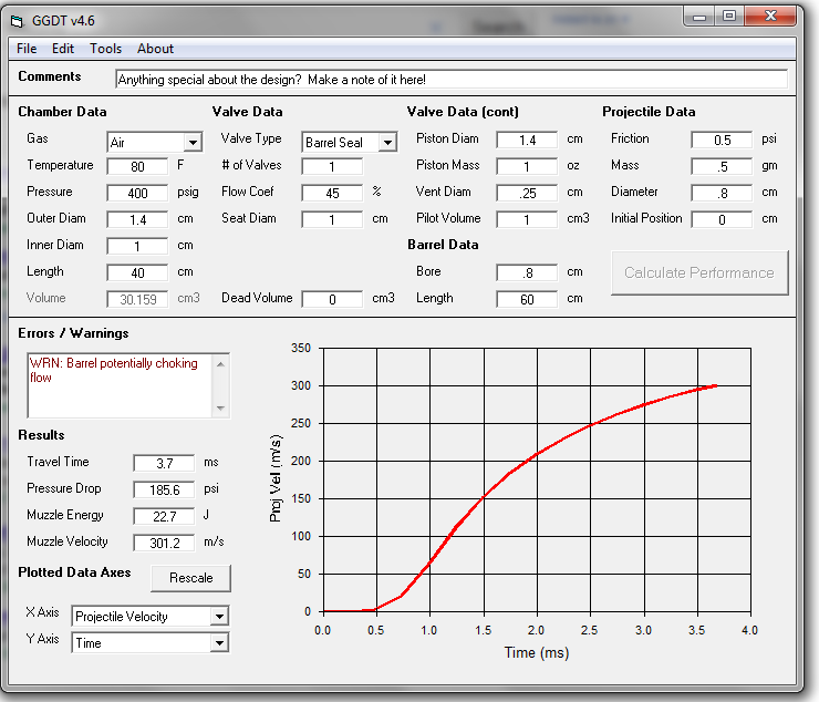 the only thing i see that is different is the pilot volume on this one is 1cm3 on the other one you had 5cm3, could that really affect it that much? wait i just checked again and you have got the projectile mass as .5 in the faster one and 25 in the slower one, i looked it up and i think they are about 2 grams each