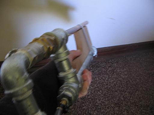 The wood isn't going to stay, it was added to see how strong it would make the gun overall and it is really solid. I even dropped it (purposely) and nothing happend. I also thought about adding another tee and some fittings but I'd rather not for now, mabey on a different project. The wood makes it feel really stable to hold but it would leave no room for the co2 tank. I would like to make a frame out of aluminium, it will take some designing though.
