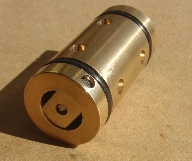 valve body, &amp;quot;top hat&amp;quot; tapped for an M3 grub screw, valve spring retainer, 4mm steel pin and delrin valve head