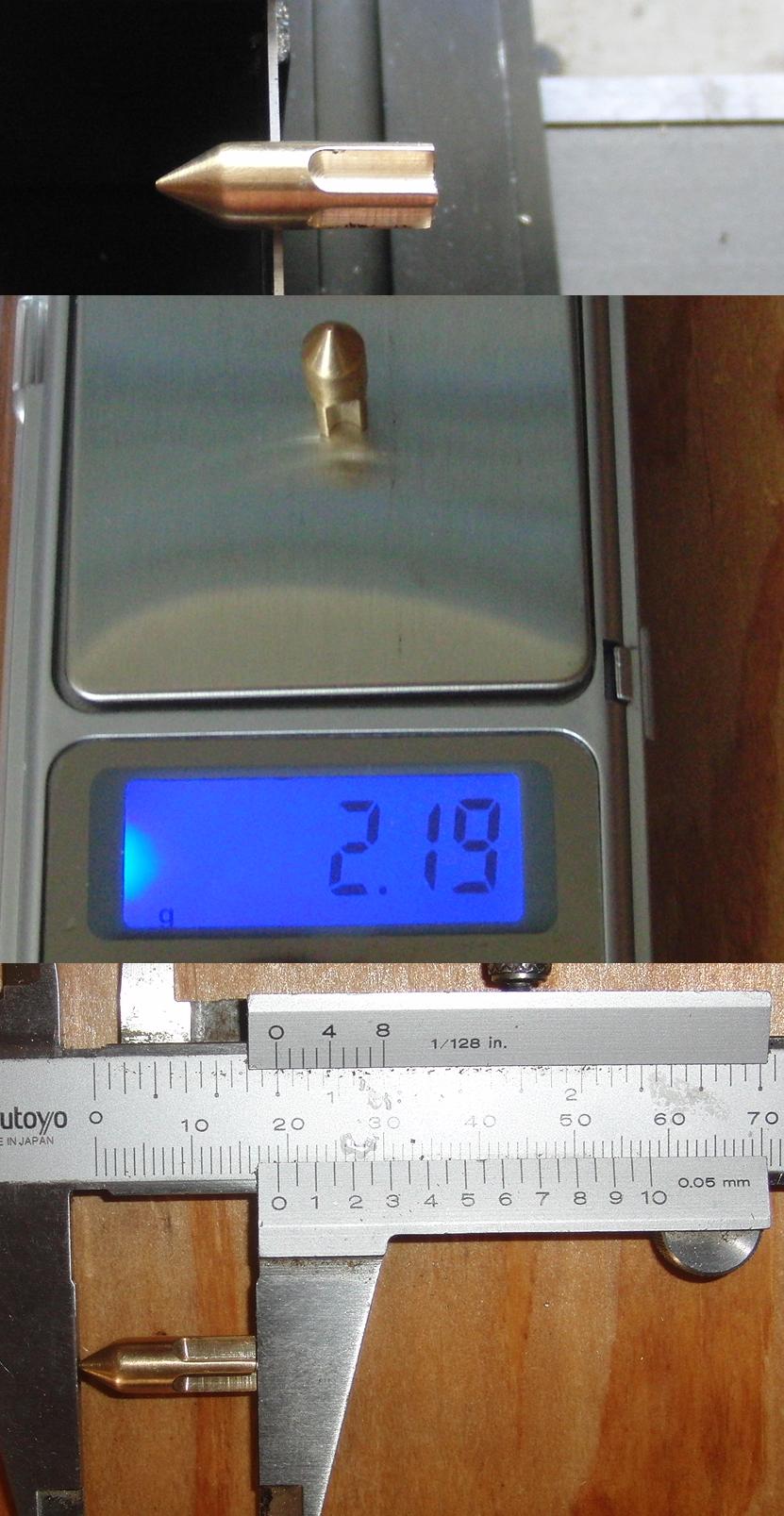 For what it's worth, CG was at the start of the delrin section and combined weight of projectile and wad was 9.05g.
