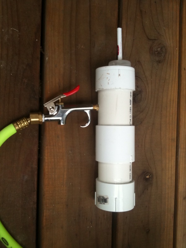 Yes the tank is still PVC, but I have a safety cutoff switch built into the air compressor. I'm interesting in a setup that would still use high pressure air for the propulsion system. I was thinking of maybe getting one of those high pressure metal or carbon fiber paintball tanks that can take about 3000 psi and regulating down, but I have no idea how I would charge any tank beyond 150 psi (the limit of my air compressor). I have considered using a refrigerator compressor, but the price of such devices is beyond my current capabilities. Any suggestions?