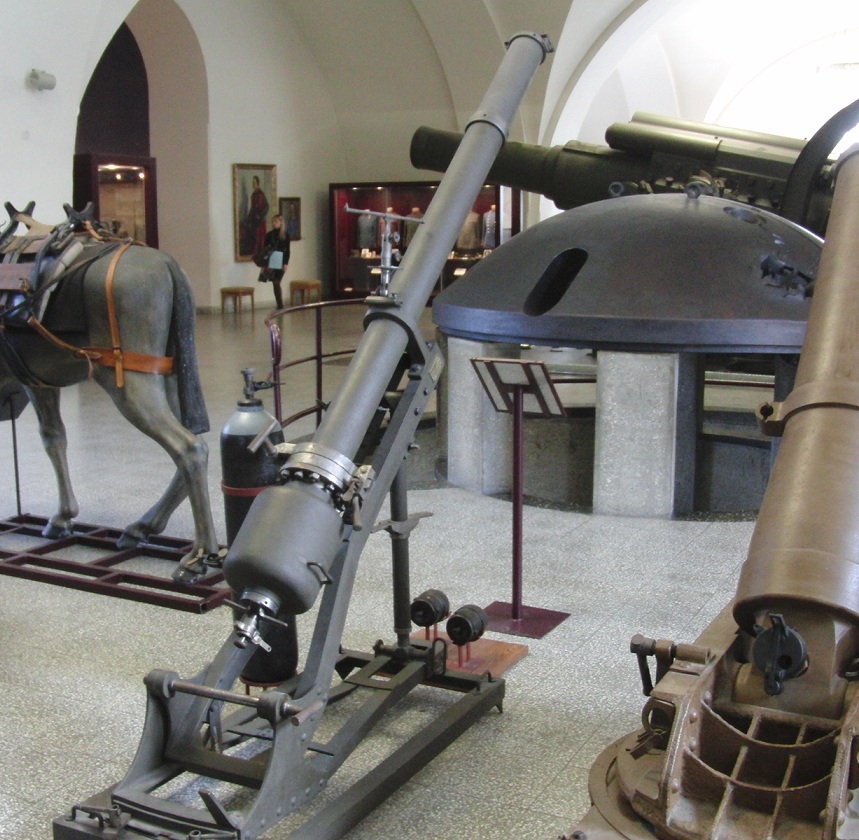 The display including the 12cm mortar in the foreground and 20cm mortar in the background