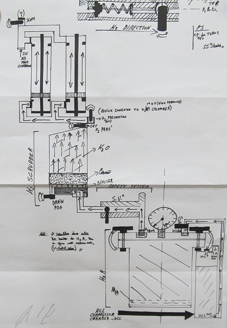 The reactor as all of you Know has a safety valve and I have also put in a valve,(pistol one) that i have with me while the reaction is active, to reduce the pressure inside the H2Reactor, it reaches 4 bars, today I have filled a ballon with H2 and did a fire test, with a remote ignition system i have done and shown in the following picture, i had used Zn instead of Al because Zn is more reactive so it produces the final product really fast, the ZnCl2 didn´t react with the nylon as I first thought to do and the H2R also has a Pressurized Injection System (PIS) designed by me that consists in not only the use of gravity force to put the HCL in the H2R, it is a chamber, PVC chamber to not react with the HCL, and it has another valve,(pistol one) in my hand that is connected with my compressor, at 4bars, and it injects all the HCL (0.5L), inside the H2R.(I have used an electrolysis but it was to slow... and with my scrubber on H2R it is now a better option to follow.