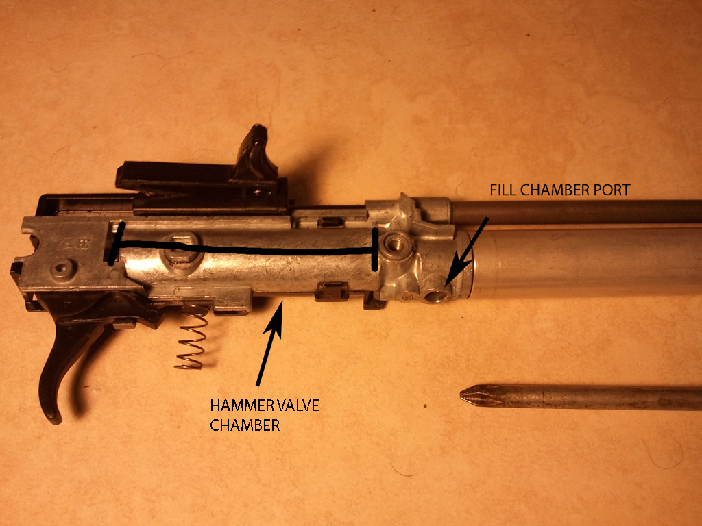 Greetings all. I've been lurking here for a while, but have yet to find anything similar to what I'm trying to do. Basically I'm looking for ideas on the best way to mount an adaptor to an existing Daisy Powerline 990 hammer valve body. The gun originally could be hand pumped, or fed from a 12g CO2 powerlet. The feed selector mechanism leaks pretty bad now, but the valve and all other mechanisms work just fine.