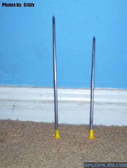 I also went out and bought a 4' long steel rod today at lowes to use as a ram rod... i just found out that the tail of the metal tipped stun darts is a perfect fit for the rod, so naturally i made some darts. (the rod was 1/8" steel welding rod) right now i only have 2, i dont want to waste too many of the stun darts that i bought, so until i buy some more tails for them, i will only have maybe 5 hunting darts tops. (and when i say hunting, i dont mean i am going to shoot them at living things - im not that stupid) i tested one of the darts out at a cardboard box filled with old magazines at 25 psi - went through 4 and the tip was lodged in the 5th - with plenty of shaft not even into the first magazine yet.