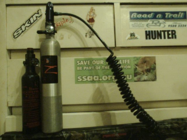 paintball tanks, remote lines etc with "ninja" 300psi SLP regulator, and a "ninja" 800psi regulator on the small bottle, is how it come brand new.